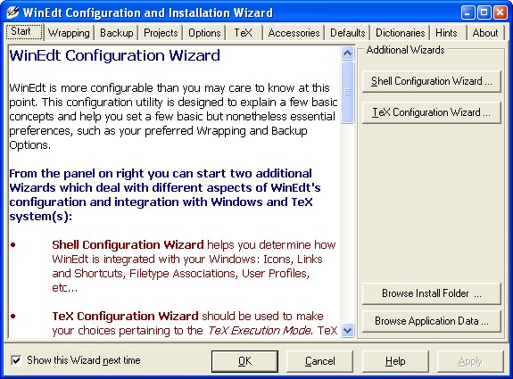 5. Nach erfolgreicher Installation startet WinEdt automatisch und zeigt den "Configuration Wizard" an: